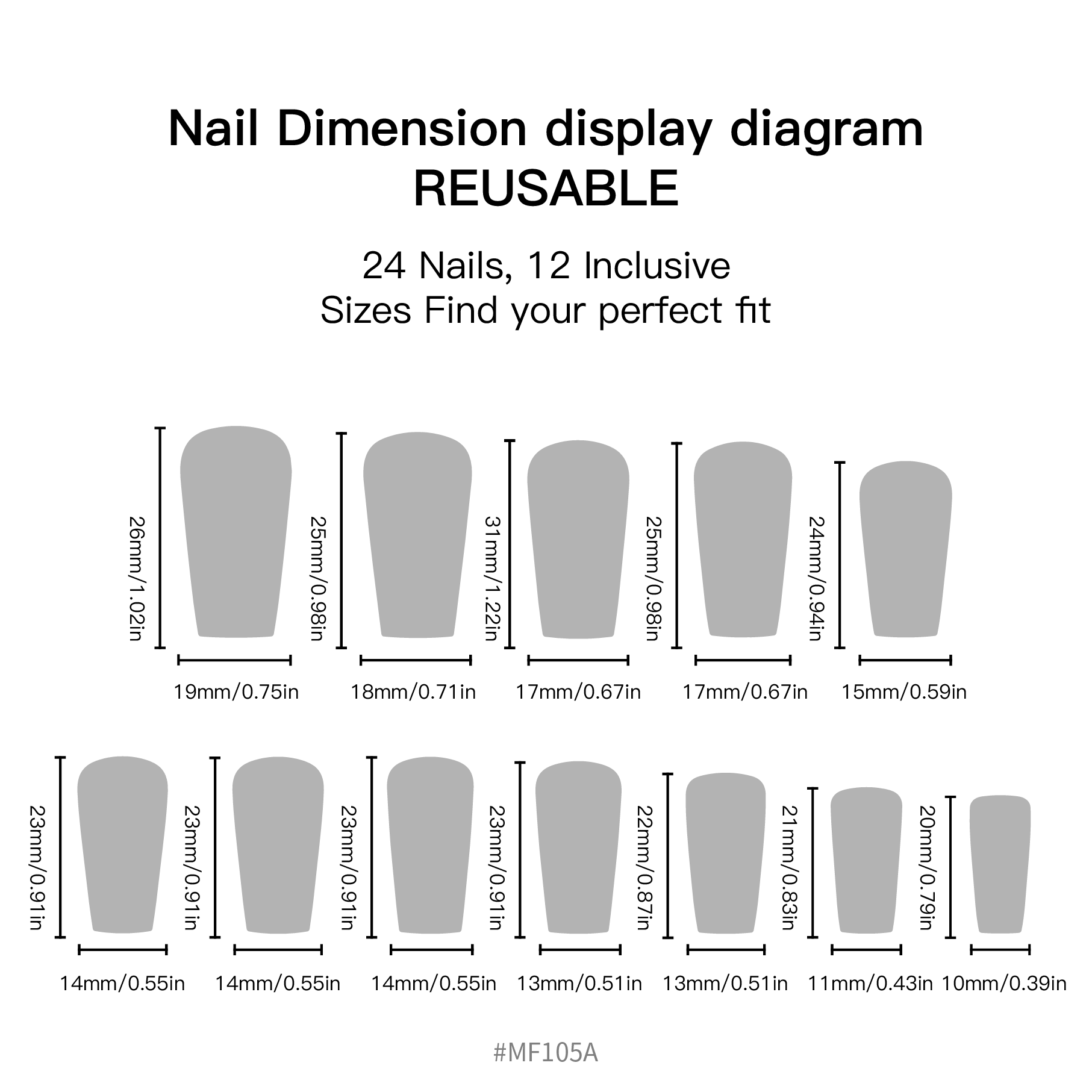 Squoval press on nails elongate fingers while offering a natural, comfortable fit for everyday wear.